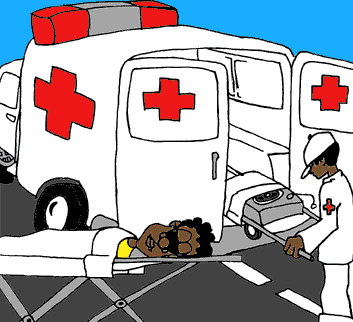 POOR RiCKY COOL COULD NOT MOVE, HE WAS HURT PRETTY BAD. AN AMBULANCE CAME TO PICK HIM UP, AND EVERY ONE WAS SAD.